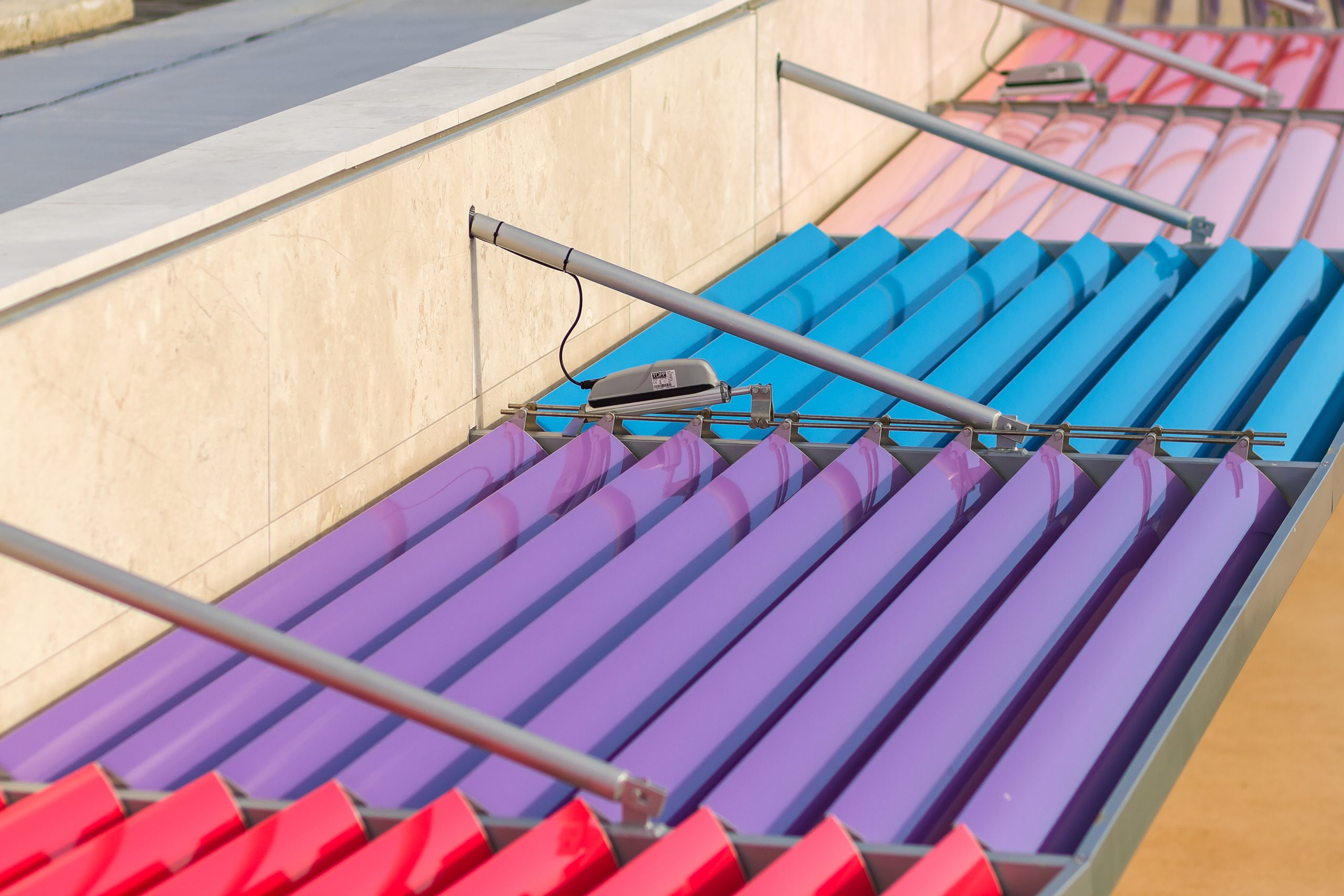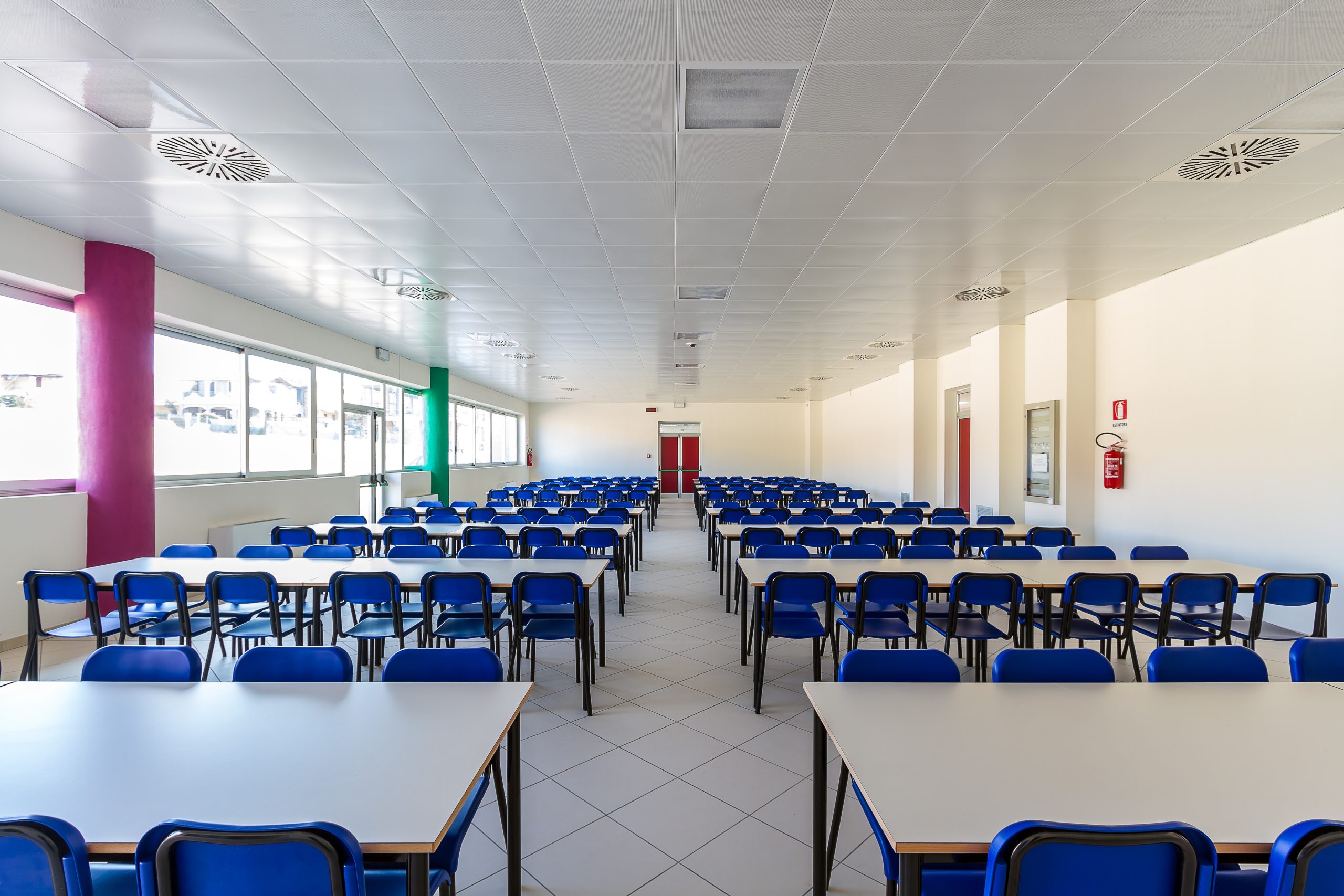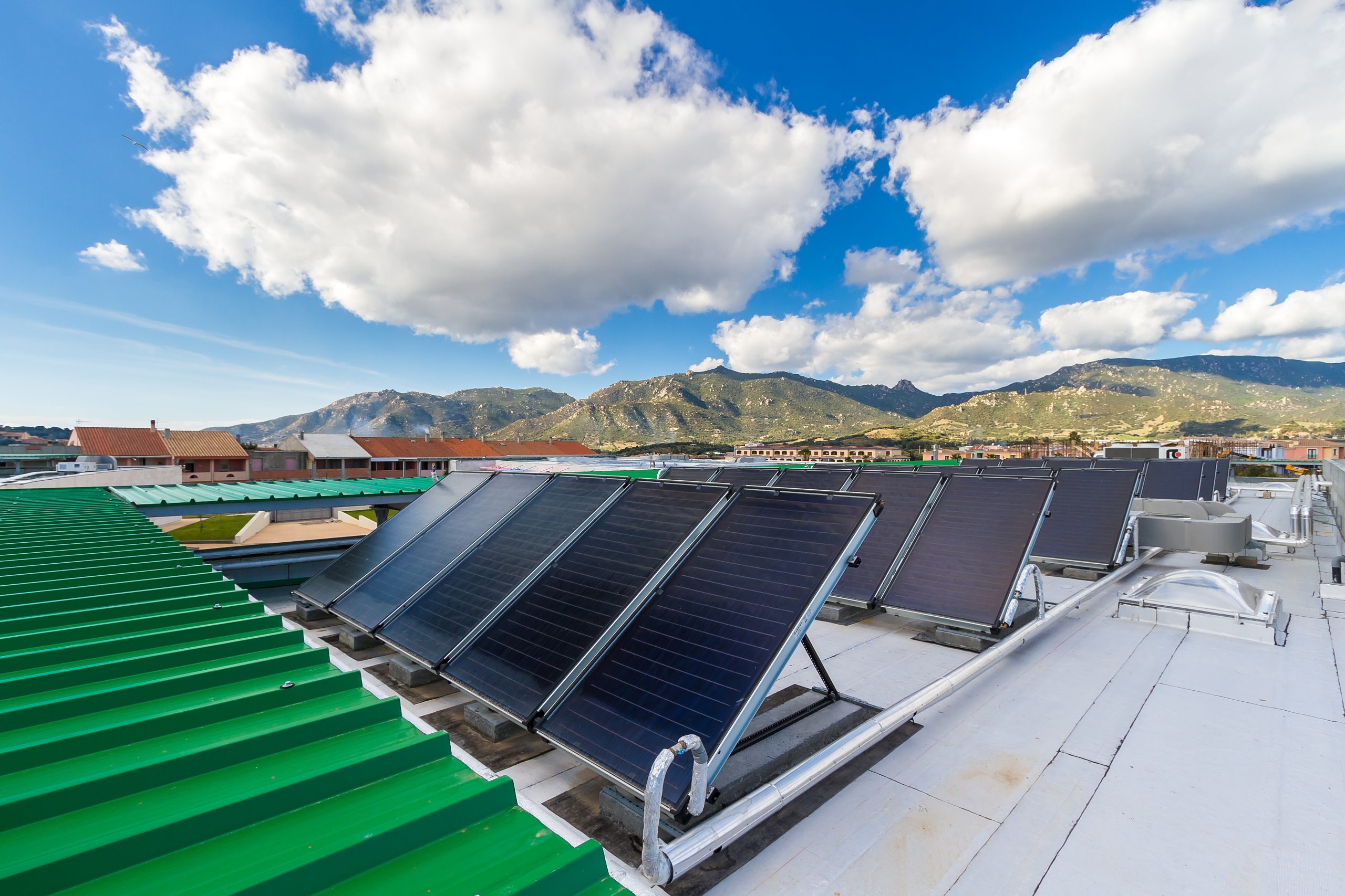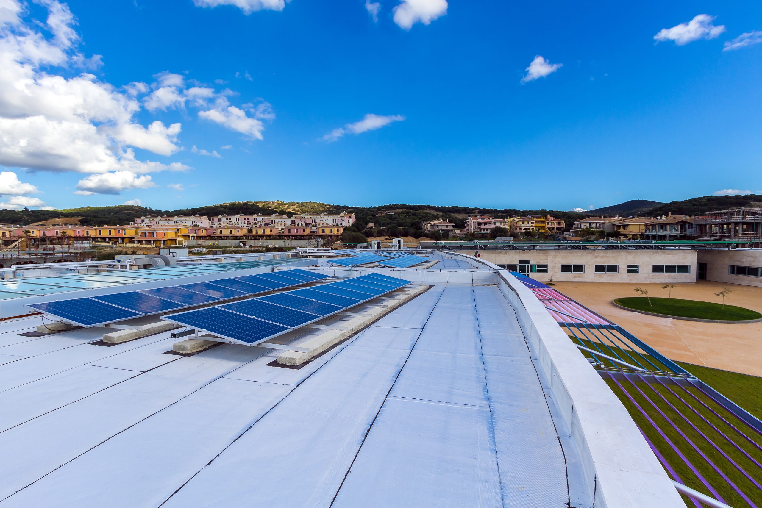 Il complesso scolastico è stato progettato prevedendo che le zone delle aule siano quelle più esposte all’influsso benefico dei raggi solari. Si è previsto nel contempo un sistema di pensiline e piastre di coperture atte a proteggere gli ambienti da fenomeni di abbagliamento e di surriscaldamento delle superfici esposte all’irraggiamento solare nei mesi estivi.