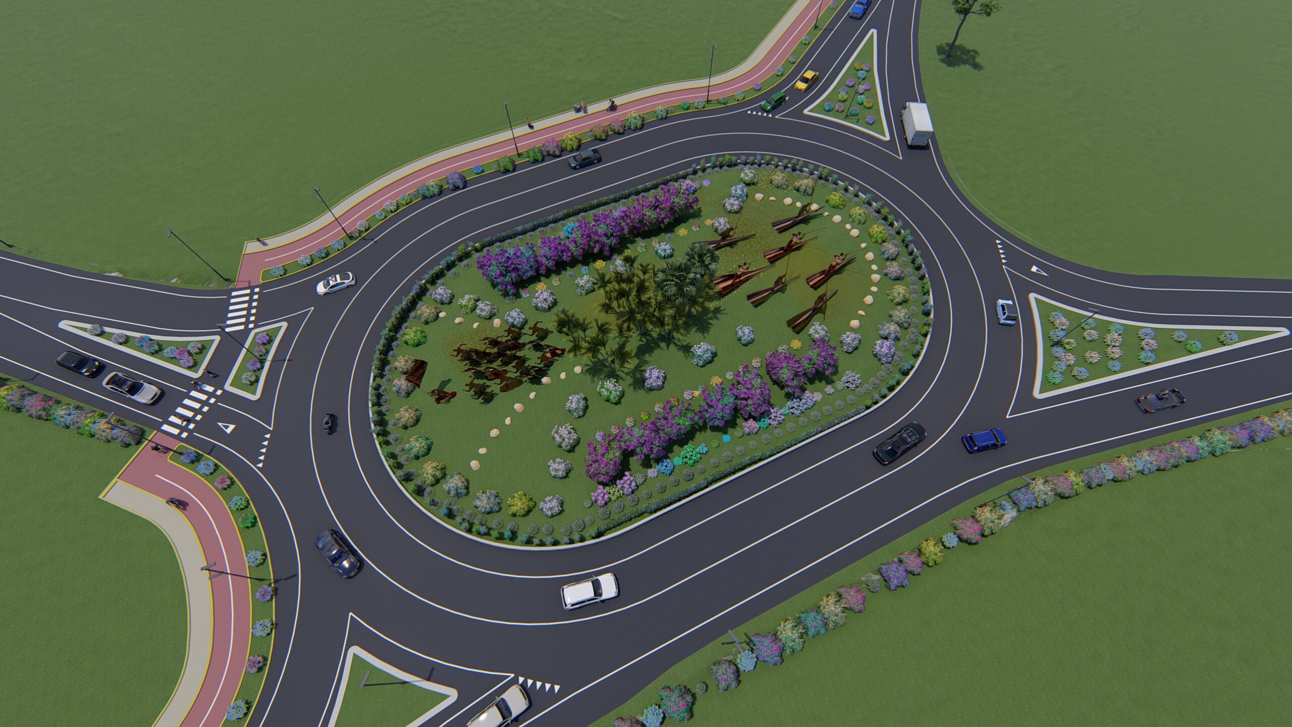 Per il Lotto 3, relativamente alla intersezione tra le SS.PP. 6/7 che si conforma attualmente come semplice incrocio non semaforizzato regolato soltanto tramite segnaletica, la situazione attuale si presenta con una forte canalizzazione del traffico lungo le SS.PP. 6/7 e manifesta criticità all’incremento del traffico veicolare da e per San Giovanni di Sinis, Putzu Idu e aree urbanizzate contermini, soprattutto nella stagione estiva, criticità che si riverberano sulla sicurezza. La soluzione di cui al presente PD-PE prevede una rotatoria tipo a 4 rami con anello giratorio, avente diametro esterno di 45 m e isola centrale di diametro 26 m. L’anello giratorio sarà composto da una corsia di larghezza 7.0 m con banchine pavimentate esterne di larghezza 1.00m. All’interno della rotatoria sarà presente una banchina sormontabile di larghezza 1.5 m. Dal punto di vista altimetrico l’isola centrale è sopraelevata di 10 cm rispetto all’anello con una pendenza trasversale del 5% e sezione conica.