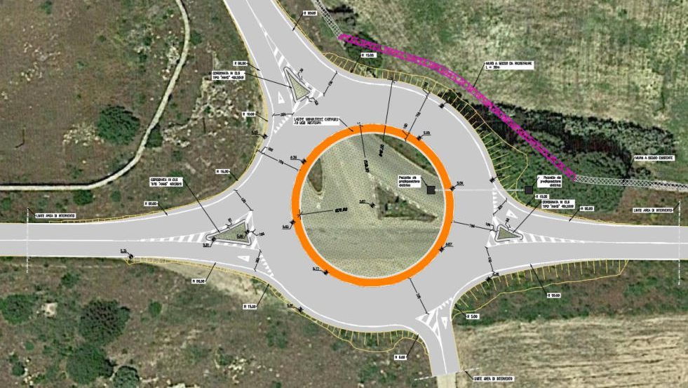 Una particolare criticità è l’intersezione tra le SS.PP. 1/6/94, che si presenta con una configurazione a raso in cui si innestano quattro rami stradali senza alcuna regolamentazione semaforica, con evidente situazione altamente critica per la possibilità di eseguire l’attraversamento per la disomogeneità di flussi, per le elevate velocità potenzialmente raggiungibili e della costrizione di incrociarsi obbligatoriamente con flussi veicolari differenti comprendenti un elevato transito di pedoni e ciclisti. In tale ambito i pedoni ed i ciclisti, frequentemente presenti, rappresentano certamente l’elemento più debole fra le correnti di traffico che insistono in prossimità dell’incrocio. Valutata la particolarità dell’incrocio, si è l’opzione della realizzazione di una rotatoria provvisoria tra le citate SS.PP. 1/6/94 che consenta di aumentare gli standard di sicurezza della intersezione. Le criticità dell’intersezione sono legate ad un elevato carico veicolare, ad unica corsia di ingresso in tutti i rami stradali dovuta all’asse prioritario di scorrimento dei veicoli (spesso a elevata velocità) transitanti nella direttrice S.P. 94 – S.P. 6, che incrocia la S.P. 1 che collega Cabras alla Frazione di Torregrande, quest’ultima percorsa da veicoli, pedoni e ciclisti con elevati livelli di pericolosità. In tale situazione s’inserisce la proposta progettuale di riqualificazione dell’intersezione con la realizzazione di una rotatoria tipo a 4 rami con un sistema di due corsie con una notevole riduzione dei punti di conflitto rispetto all’esistente incrocio che, anche per effetto della riduzione di velocità in ingresso ed in circolo e l’angolo del potenziale impatto fra veicoli, riduce sia la probabilità di incidenti che la gravità delle conseguenze. La soluzione prospettata consente ai veicoli di immettersi in rotatoria e percorrere la corsia dedicata in relazione alla destinazione del veicolo per effetto della doppia corsia di circolazione.