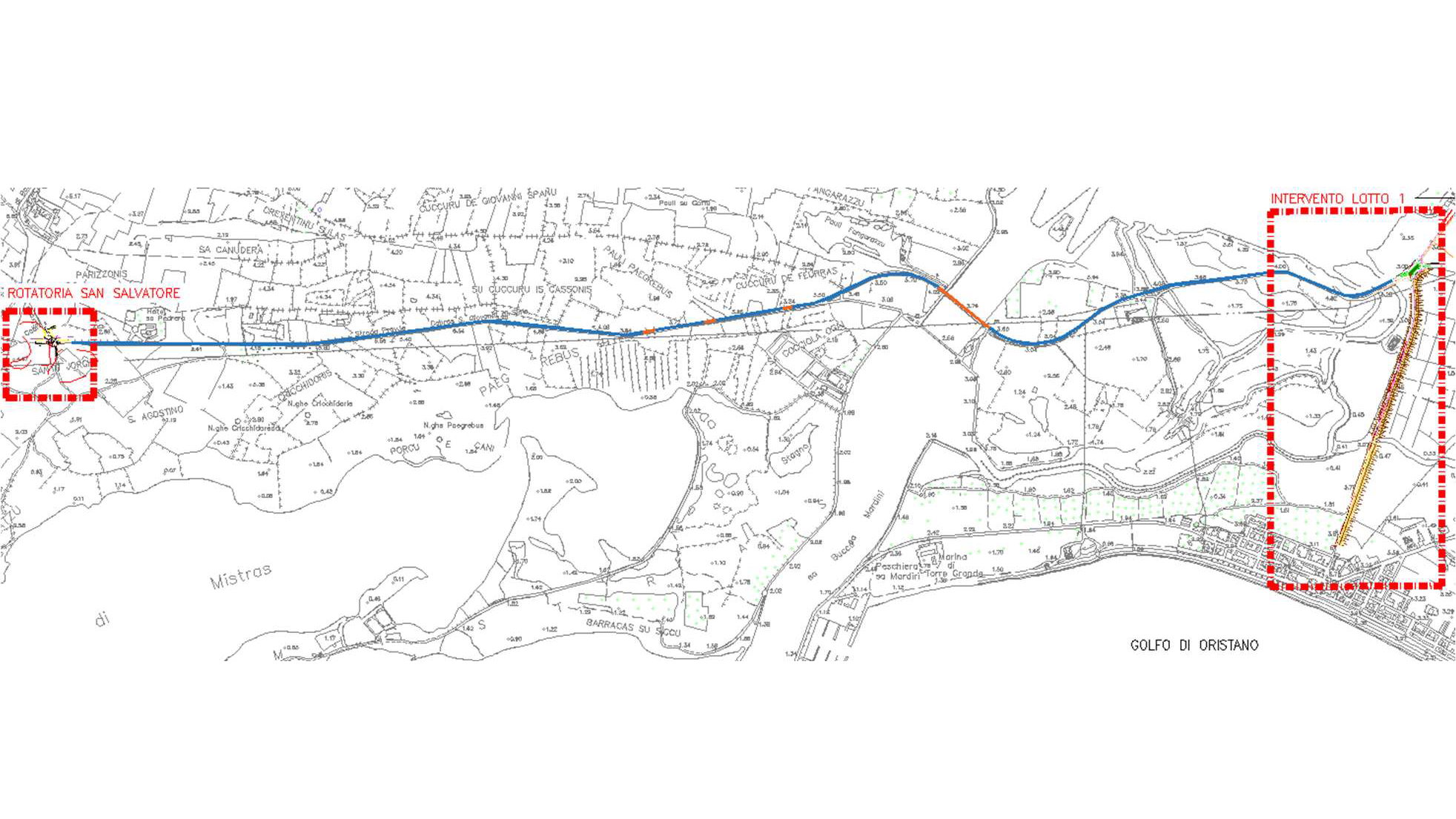 I lavori di miglioramento della Viabilità di Oristano – Cabras – San Giovanni Di Sinis si compongono di più progetti: