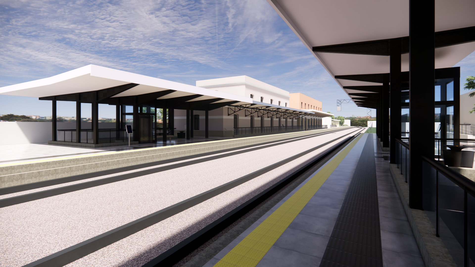 La nuova banchina fronte stazione sarà del tipo H55 per l’intera estensione della stessa, di circa 170m e quindi avrà un’altezza dal piano del ferro di 55 cm. Ciò determina una rivisitazione della funzionalità di tutta la banchina.