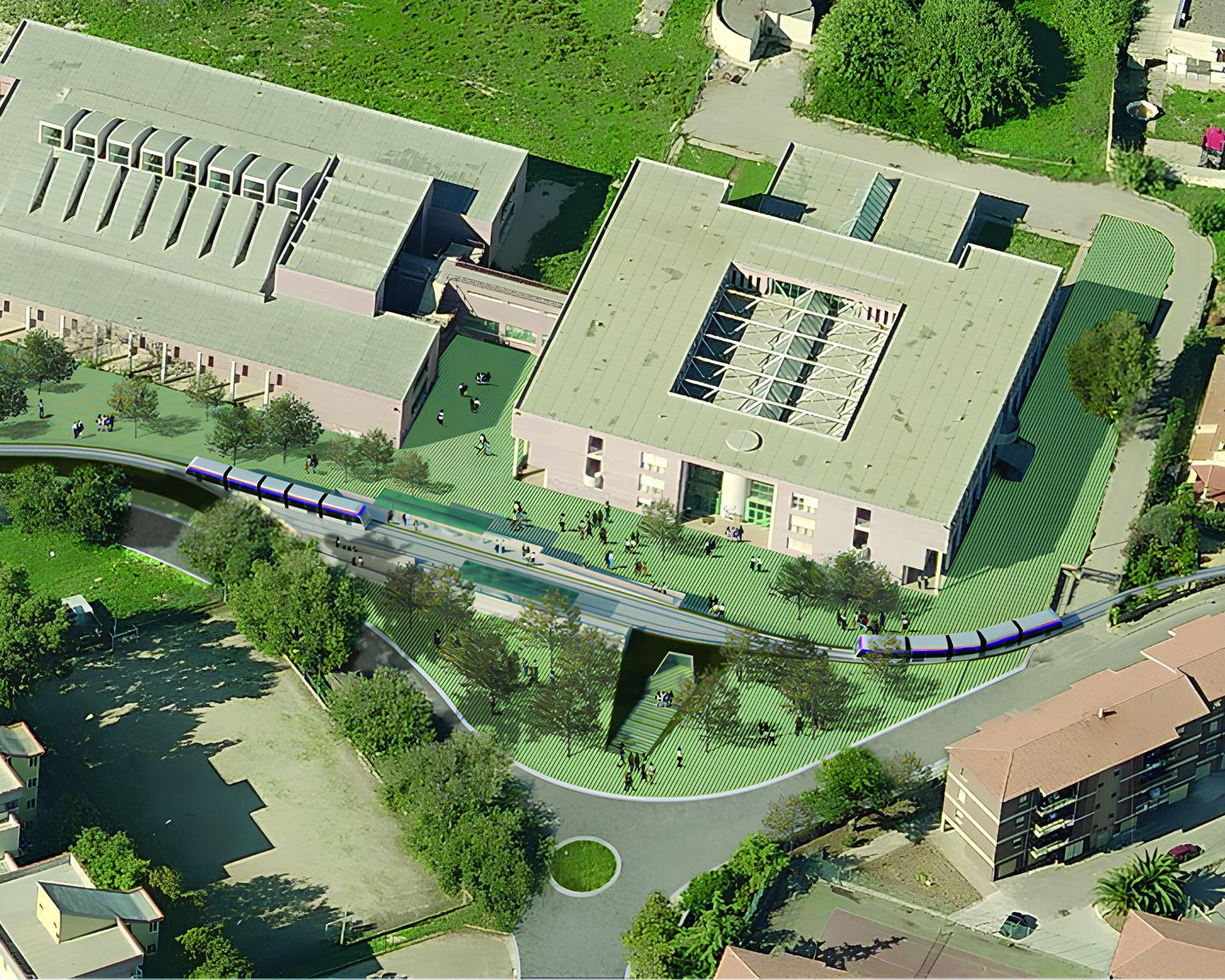 Il percorso per uno sviluppo complessivo di 6,915 km garantisce il doppio binario in buona parte del tracciato, creando le condizioni per un migliore ed efficiente servizio, e prevede la realizzazione di 8 fermate, un viadotto e del Centro rimessaggio per la manutenzione dei treni.