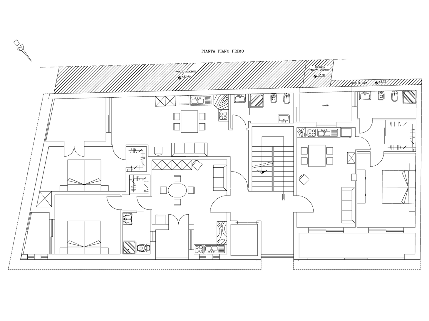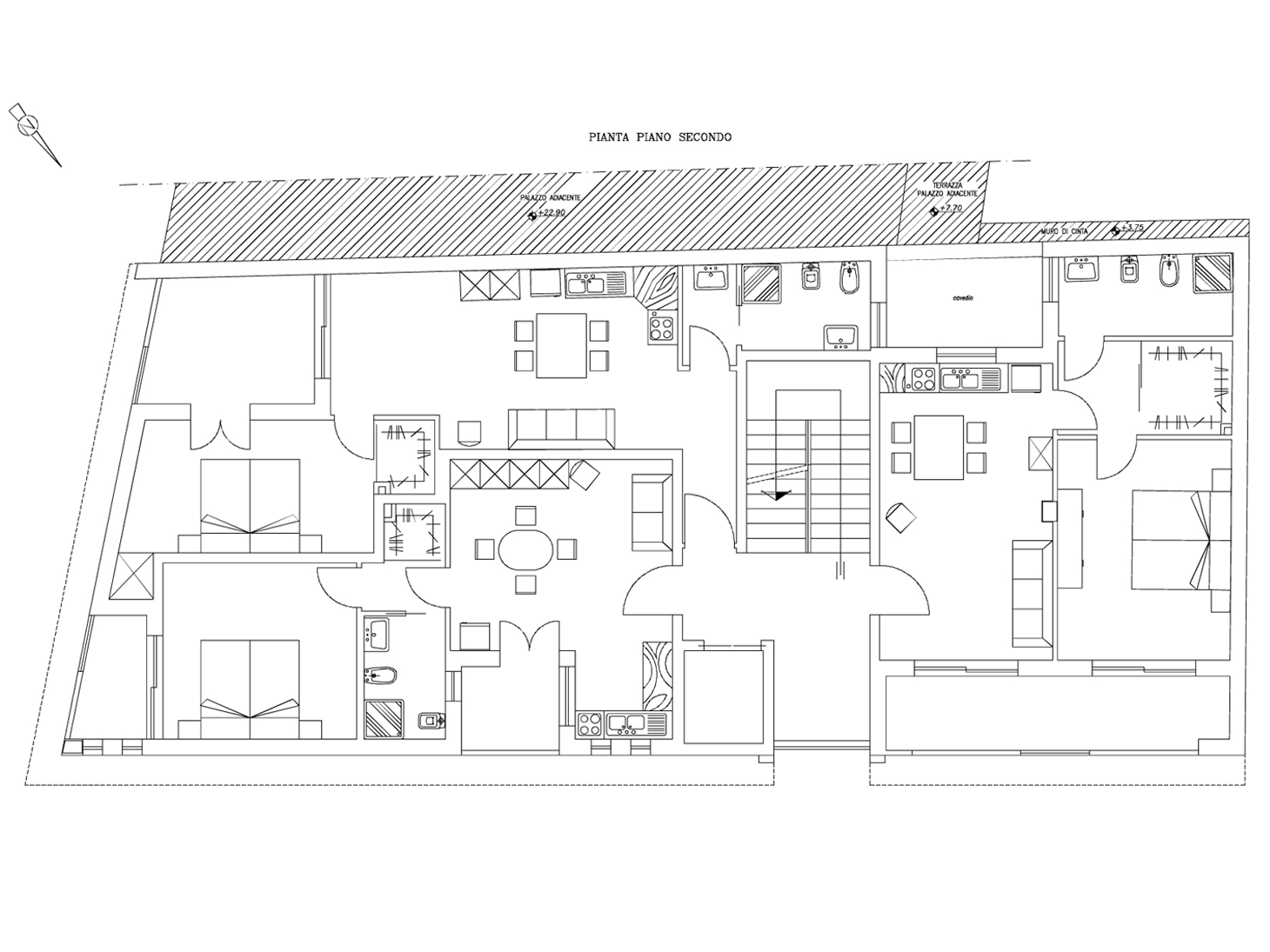 L’edificio ha globalmente affaccio su tre lati, e tutte le abitazioni hanno comunque due affacci, al fine di garantire la migliore aerazione ed illuminazione delle stesse.