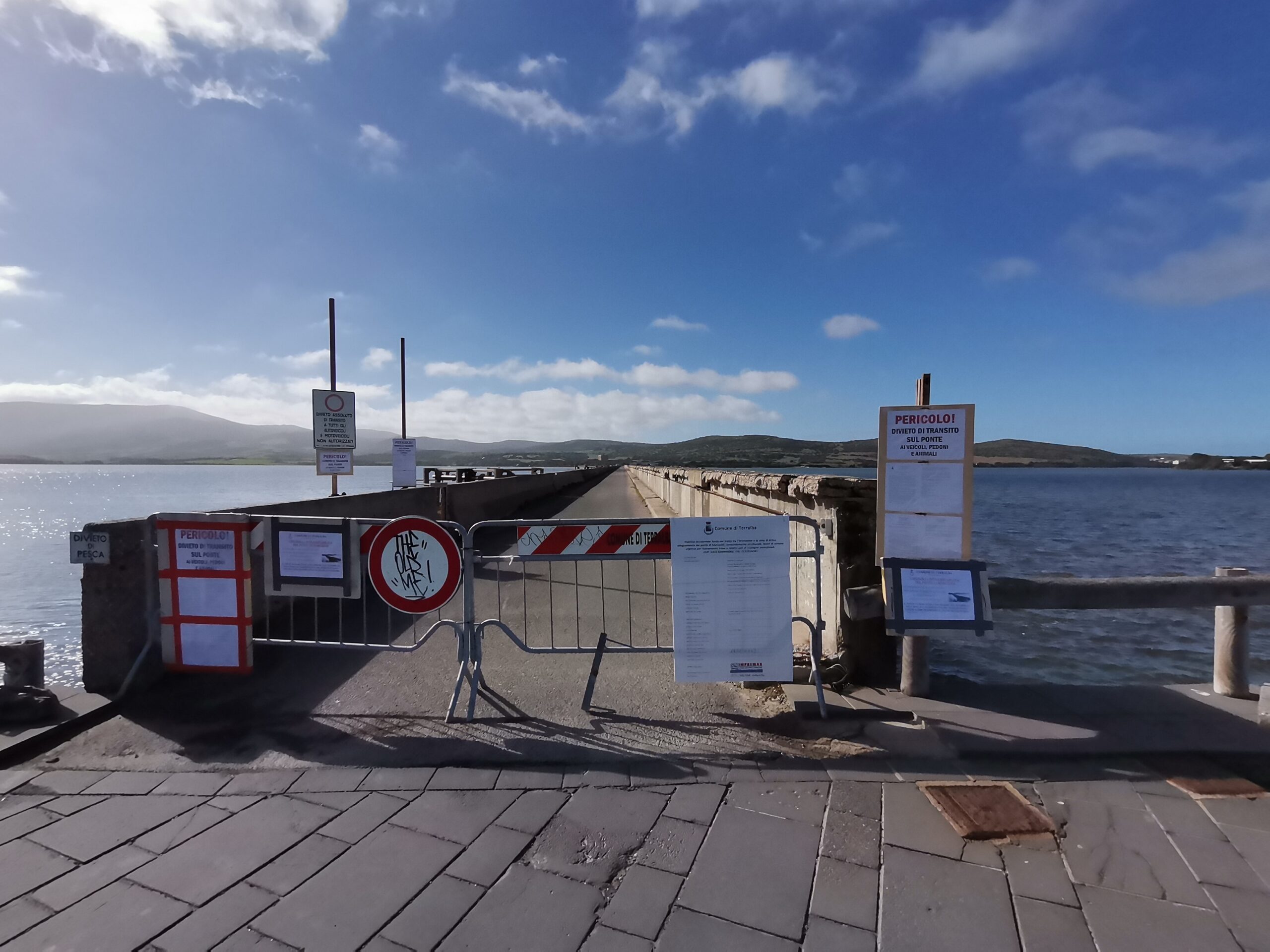 La struttura nasce come opera di collegamento tra le due sponde dello stagno per attività di servizio connesse alla peschiera, attività che costituisce la principale risorsa economica del luogo, ad ha connotato nel tempo in modo pressoché unico l’intera zona. L’utilizzo della struttura per il regolare traffico veicolare non risulta oggi formalmente consentito in quanto l’opera, sebbene progettata con riferimento alle norme all’epoca vigenti in materia di ponti stradali è stata collaudata entro i limiti di carico previsti in progetto ed ai sensi della legge 5-11-71 n° 1086, ma non considerandola come struttura destinata al traffico stradale.
