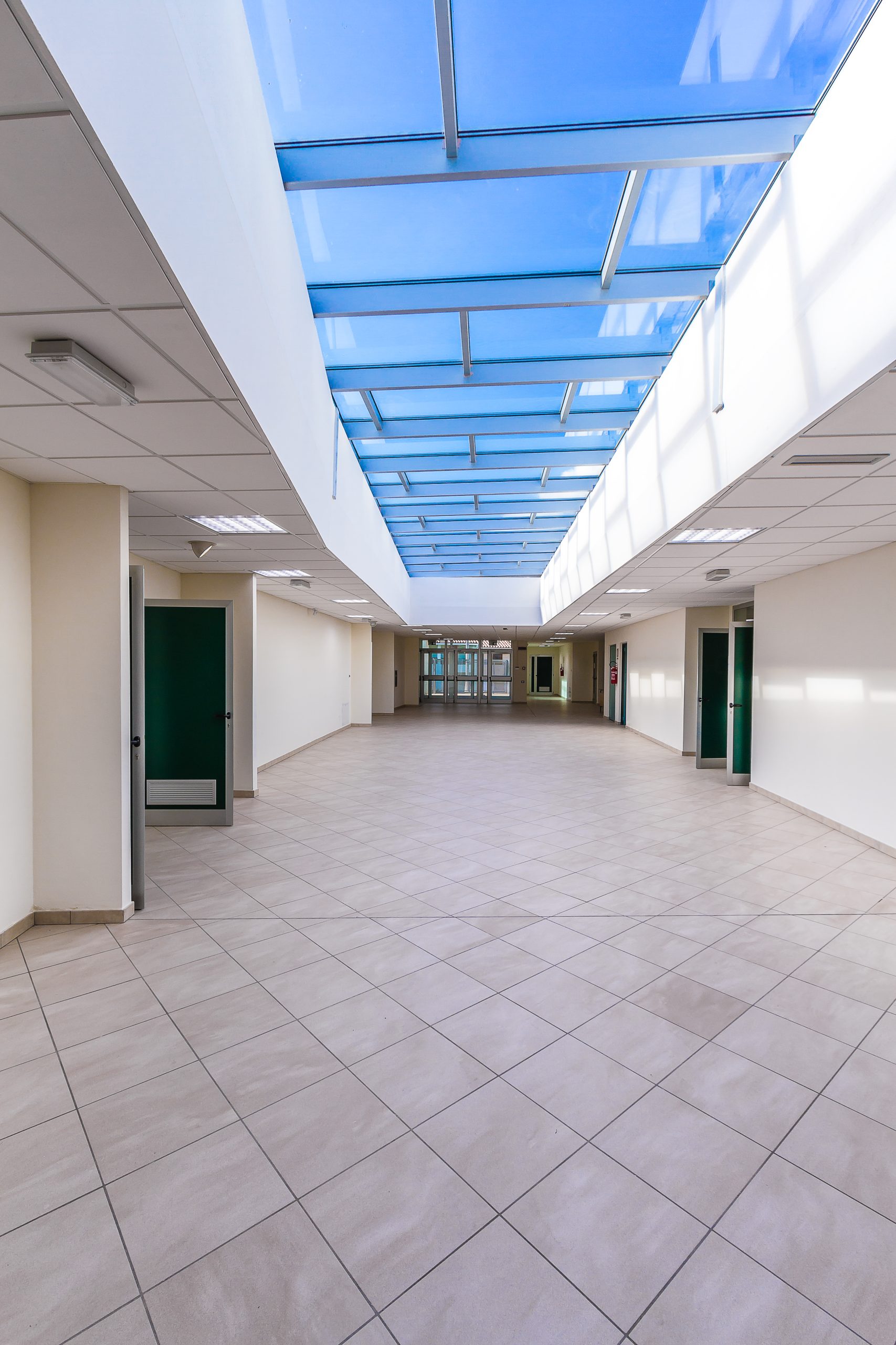 Il complesso scolastico è stato progettato prevedendo che le zone delle aule siano quelle più esposte all’influsso benefico dei raggi solari. Si è previsto nel contempo un sistema di pensiline e piastre di coperture atte a proteggere gli ambienti da fenomeni di abbagliamento e di surriscaldamento delle superfici esposte all’irraggiamento solare nei mesi estivi.