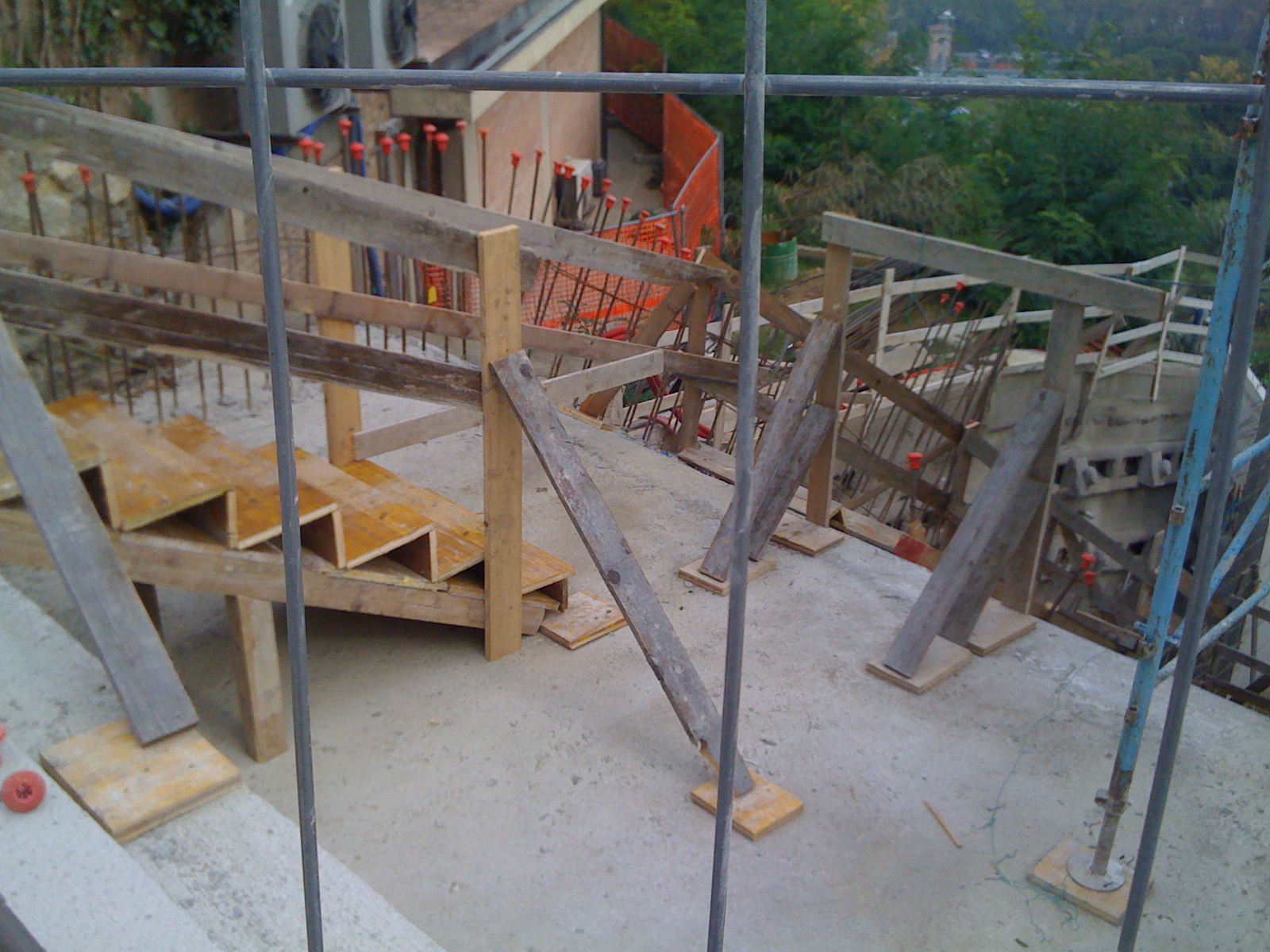 Le strutture portanti delle scale e dei tappeti risultano in cemento armato con piastra di fondazione, parte di tipo diretto, e parte poggiante su pali trivellati di 500 mm. e micropali da 250 mm. Sono anche state previste opere di sostegno dei rilevati lato monte mediante strutture tipo “berlinese” che consentono lo scavo a valle in condizioni di sicurezza. L’ opera viene inoltre completata in corrispondenza dell’Antiporto di Camollia, con la costruzione dell’ambiente biglietteria e del terminale di arrivo, su diaframmi di contenimento del terreno, rifinite con strutture in vetro ed impianti. È stata costruita inoltre la rete di fognatura ed è stata sistemata a verde della zona interessata